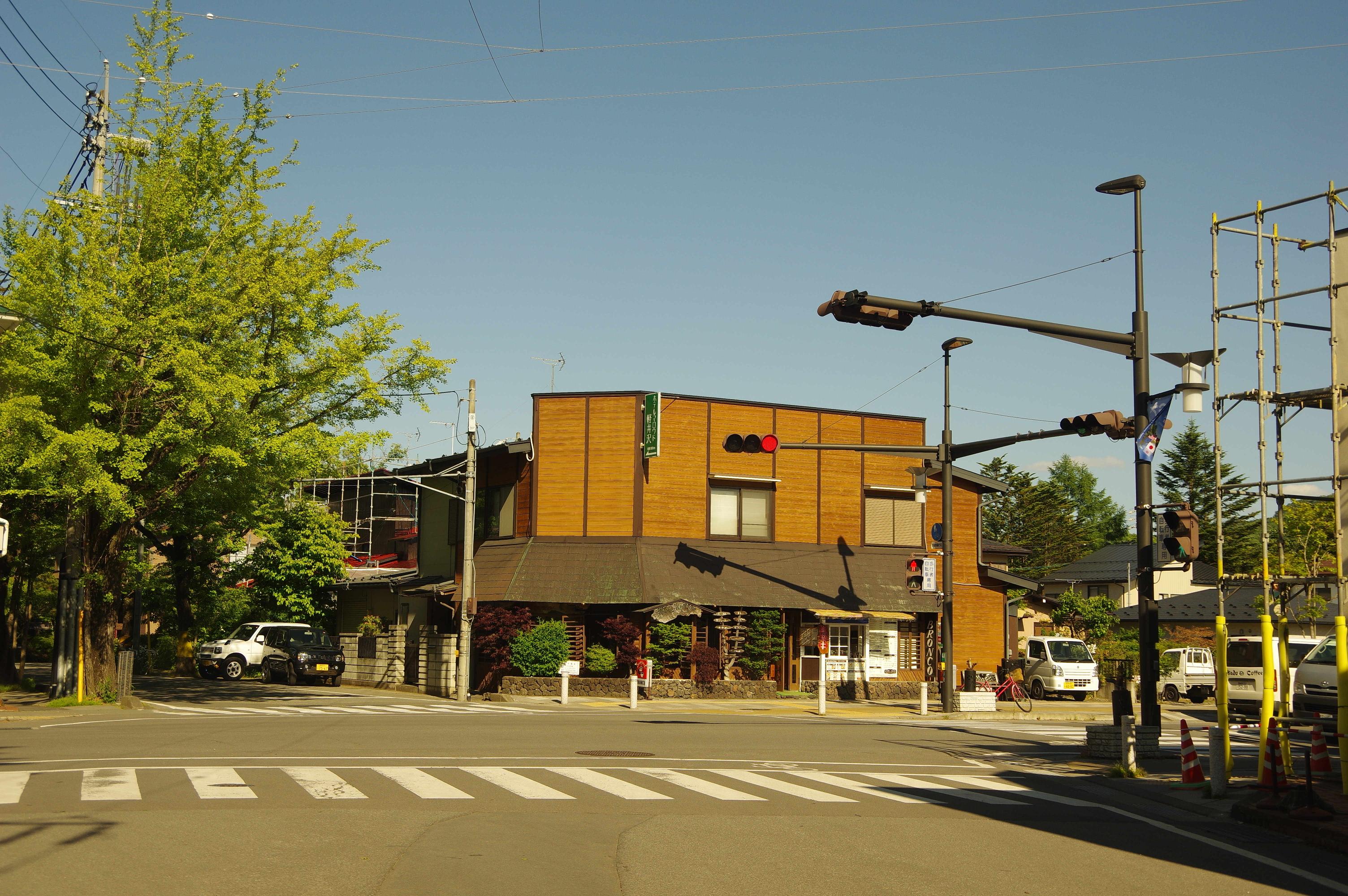 軽井沢駅北口ゆっくり徒歩で10分、駅前本通り東雲交差点右手前角、