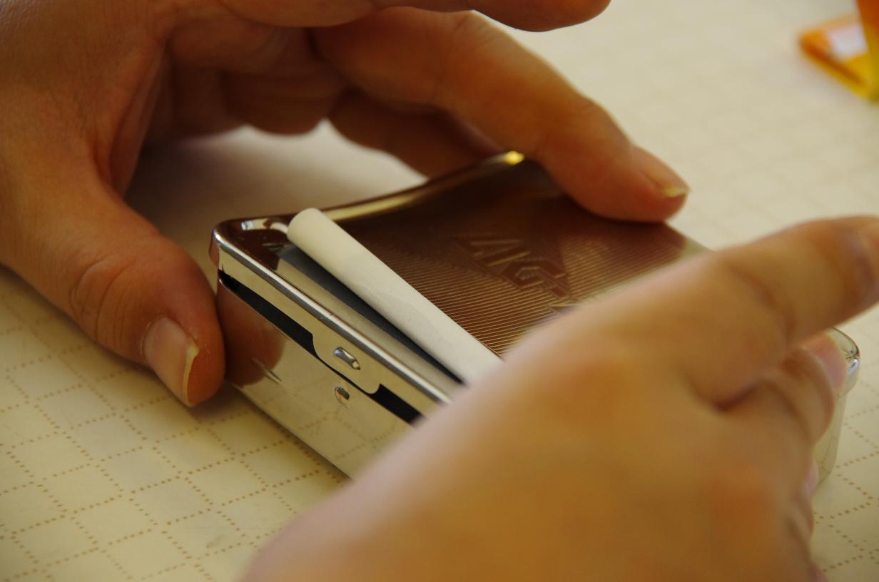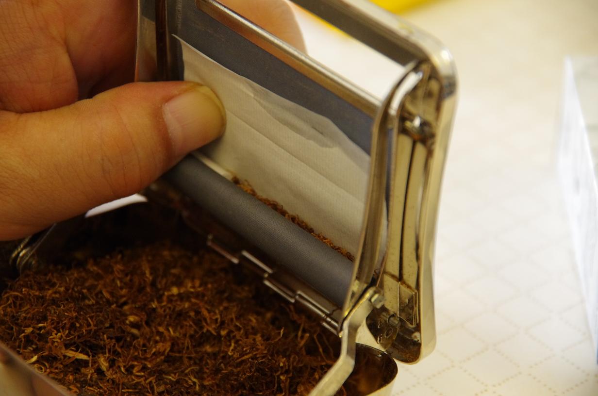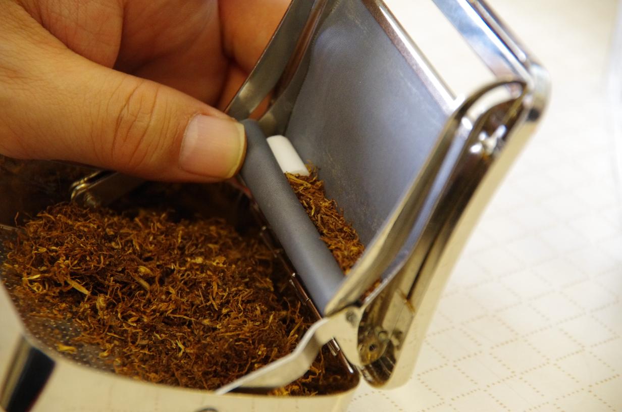 先ずフィルタをセットし、タバコの葉を適量詰めます。