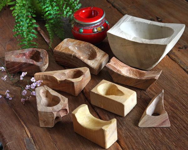 パイプの大きさはさまざまであります。一応どのパイプでも置けるよう加工したつもりです。その他はやはり端材で灰皿、ヘラ、タバコ小物入れの、つもりで作ってみました。