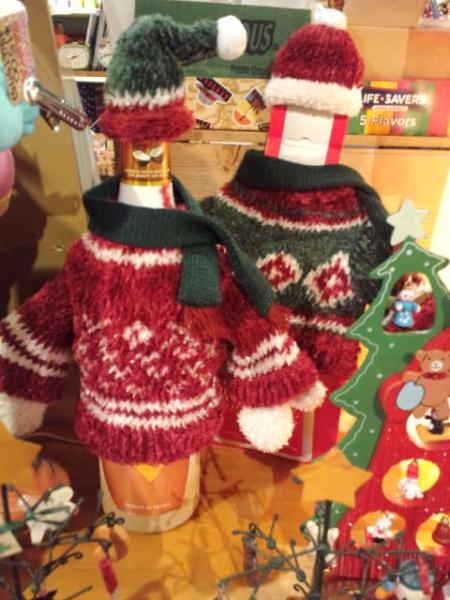 ボトルに着せるXmasカラーのセーターと帽子です。