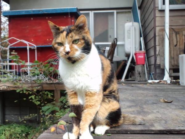 ハナちゃん 朝のひなたぼっこもちょっと寒そう~北軽井沢 今週からいっきに冬に向かいそうです。 紅葉も今が一番きれいです~ 軽井沢も紅葉がだいぶ進んでいますよ~ 週末ぐらいが見ごろになるのかな~? 雪はまだですが^^ 暖かくしてきてください~^^ 夜の冷え込みは東京の真冬なみですよ~>< 「ハナちゃんなんだかごきげんななめですね~?」 「だって・・・なんかでかいのがうろうろしてるんだもん」 ハナちゃんもうちょっと大目にみてもらえんませんか~? |