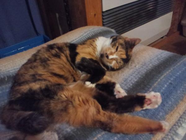 ハナちゃんはストーブの前で爆睡中